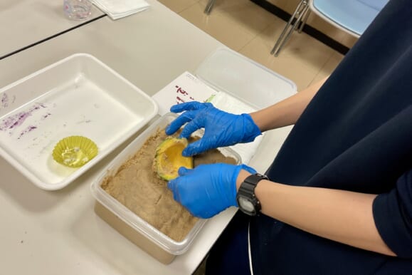 以前、卒業生シリーズでお世話になったもりさんの会社を訪問しました。畑から製造、販売までをこなしておられます。すぐき漬け、千枚漬け、しば漬けなど京都の三大漬物のほか、漬物の新しい提案商品づくりなどおもしろい話をいただきながら、ぬかづけの作り方を習いまして、お土産にぬかずけをいただきました。漬物づくりは、伝統文化と科学が交わる領域です。発酵の温度管理や塩分濃度の調整は、まさに“見えない現象をコントロールする技術”であり、化学・生物・家庭科・技術科のすべてを横断するSTEAM的学びが含まれている興味深い分野です。