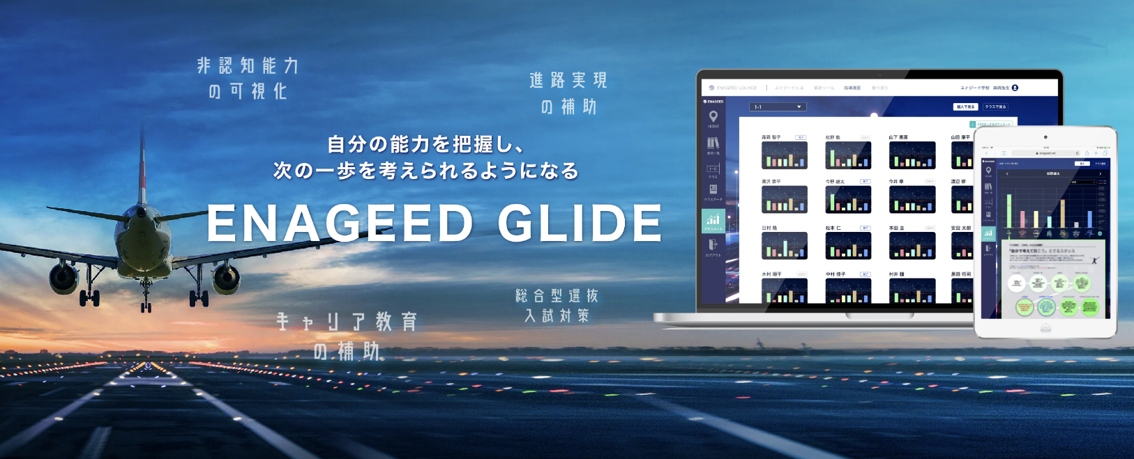 ENAGEED GLIDEでは、近年話題になっている非認知能力(意欲、自律性、協調性、粘り強さなど)に焦点を当て、「7つの素養」と「8つの成長段階」をデジタルツールとして可視化してくれます。生徒自身の内面の成長が明確になり、次の一歩を具体的に考えるサポートをしてくれます。考えや振り返りの記録をもとに、振り返ることで自己肯定感うや、自分の力を「どう使えばいいか」を考えるきっかけになると思います。「自分にもチャンスがある」「世界を変えられることに気づいた」「壁を乗り越えられる」といった気づきにつながっていきます。