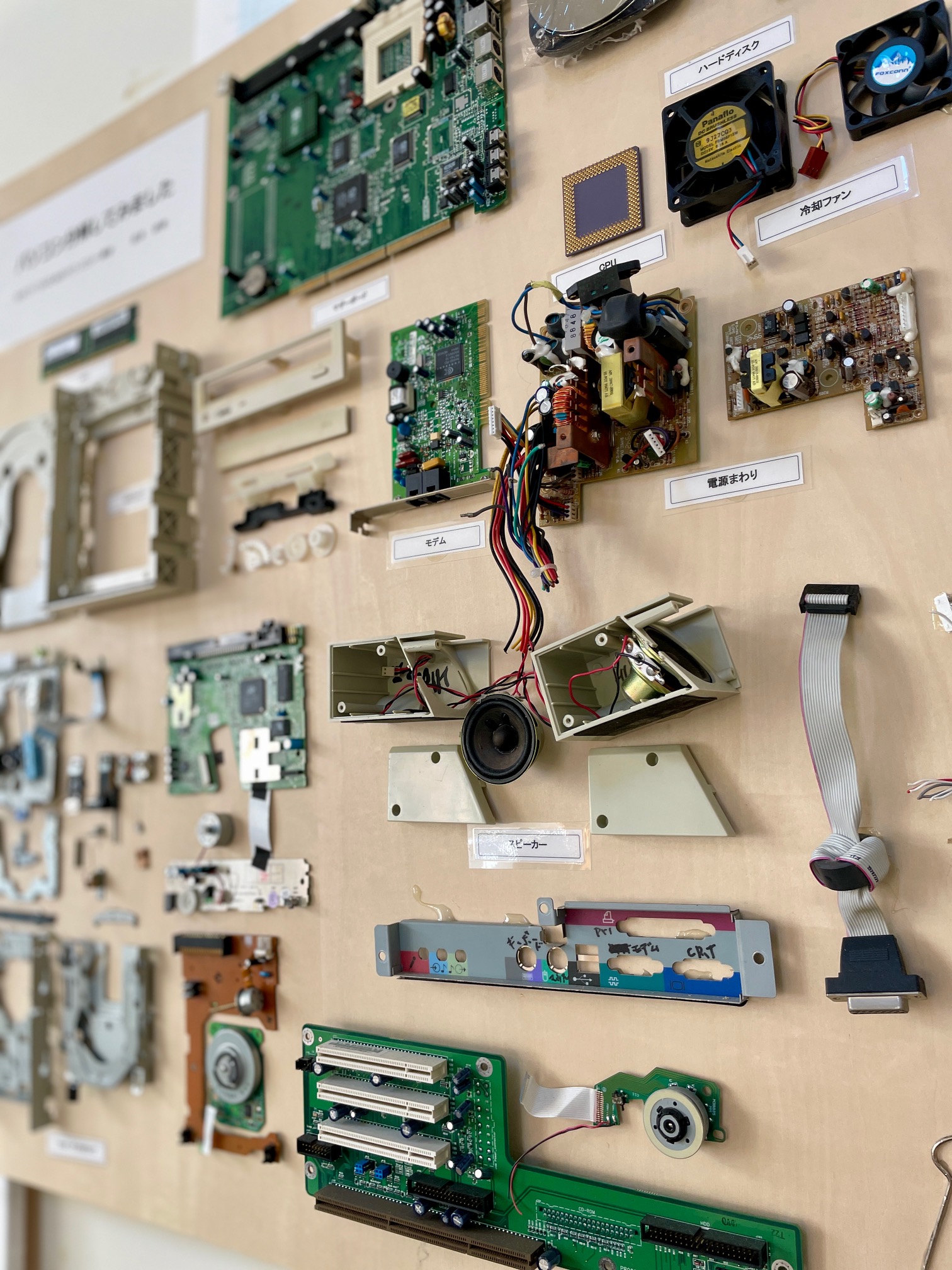 生徒たちが作ったパソコン分解オブジェは作品展示だけでなく、分解=学びの探究 × アート表現 × 資源循環というメディア・スペースの新しい展示携帯を示唆しています。今後、企業や社会が取り組むリサイクルの姿勢とともに、生徒たちの学びをデザインしていきたいと思っています。(技術科 沼田 和也)