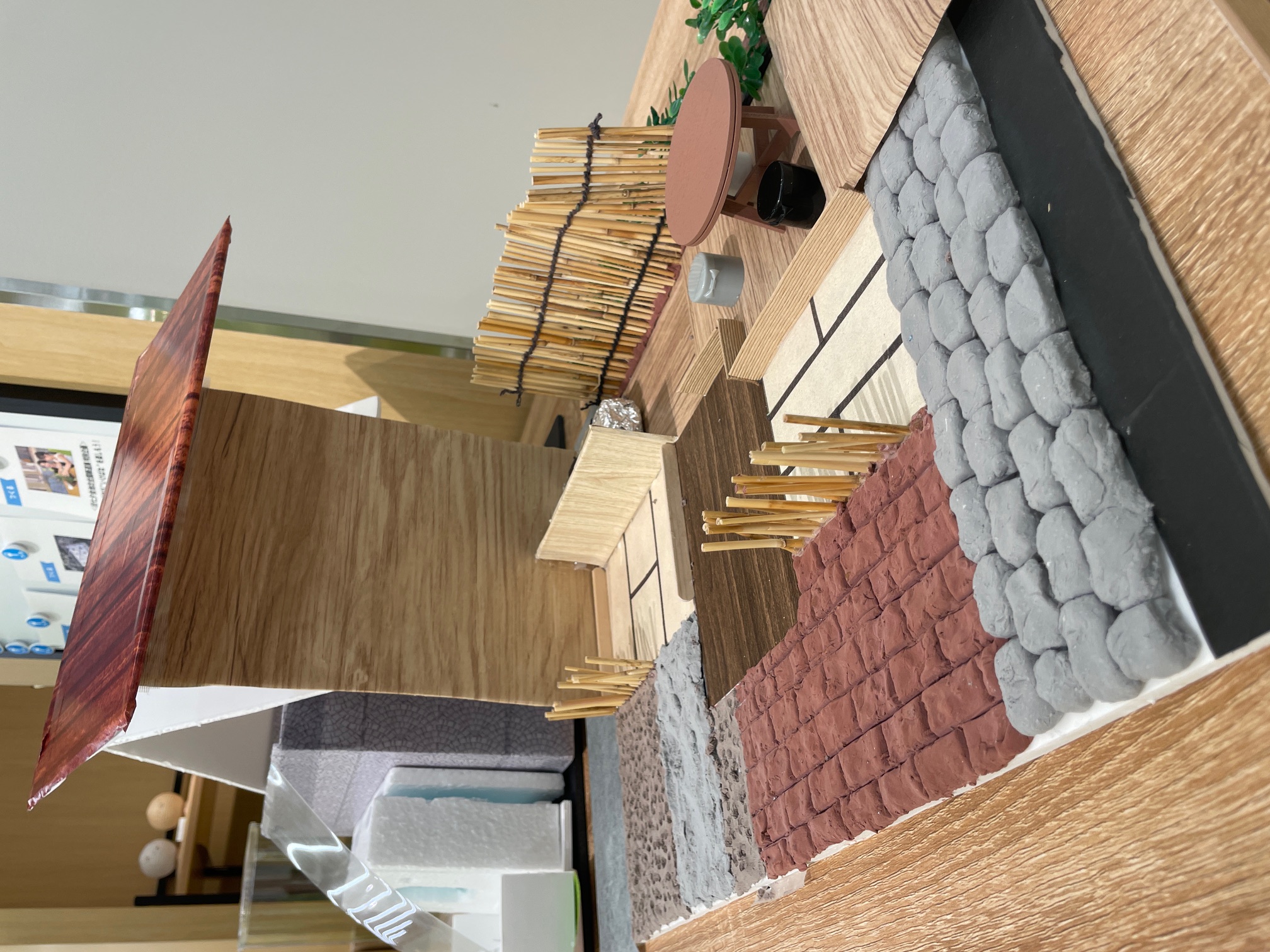 空き家という社会課題に対して、古民家の屋根瓦や格子の風景をただ「昔のもの」としてみるのではなく、それらを結び付けながら未来を想うまなざしが伝わってきます。写真にあるようなプロトタイプ(試作品)には、北澤さんの「考え」と「つくる」が表現されていて、まさに手の中で考える探究の時間だったのだなあと思います。(技術科 沼田 和也)