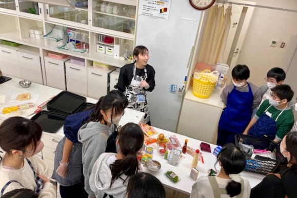 学びプロジェクトの一環として、熊谷先生といっしょに「すぐきPIZZAをつくろう」という調理実習を行いました。当日は約20名の生徒が参加し、それぞれがオリジナルのすぐきピザづくりに挑戦しました。