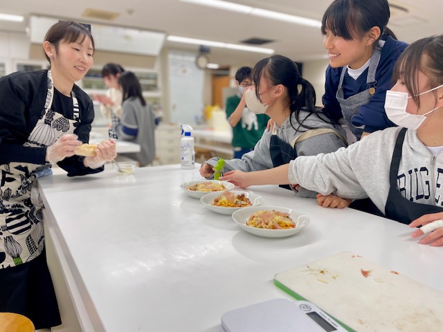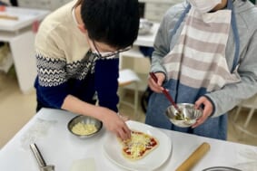 そこにチーズをのせるのか、玉ねぎを合わせるのか、生徒たちは思い思いの組み合わせを考えながら、自分だけの一枚を仕上げていきました。