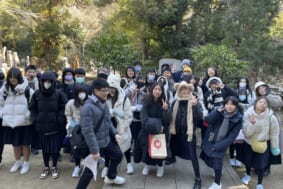 1月23日は「創立者永眠の日祈祷会」の日で、若王子の同志社墓地にて朝9時から開催され、淡江高級中学の生徒30名と先生方2名と一緒に本校の有志の生徒とともに参加しました。