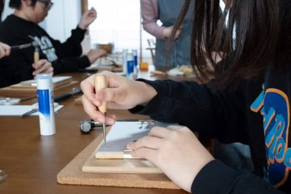 京都の老舗「西川紙業」を訪ね、和綴じノート作りと工場見学を体験しました。本物と触れ合い、社会とのつながりを学ぶ「学びプロジェクト」を通じ、生徒たちは職人さんの緻密な手仕事に感動しました。湿度の変化に合わせて糊を調整する繊細さや、20代から70代までの職人たちが技術を繋ぐ姿に触れ、教科書では得られない「生きた知識」を発見する貴重な機会となりました。また、海外市場を見据えた戦略的な視点など、企業のリアルな挑戦についても対話を通じて学びました。自ら選んだ装丁で一針ずつノートを綴じる経験は、単なる制作を超え、物への敬意や社会を多角的に捉えるきっかけになっていると思います。(技術科 沼田 和也)