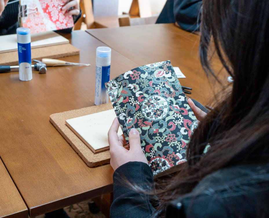 「自分で組紐や装丁を選ぶ体験はとても楽しいし自由度があって、自分で作ったものに対して愛着が湧いた。」(3年 尾田)